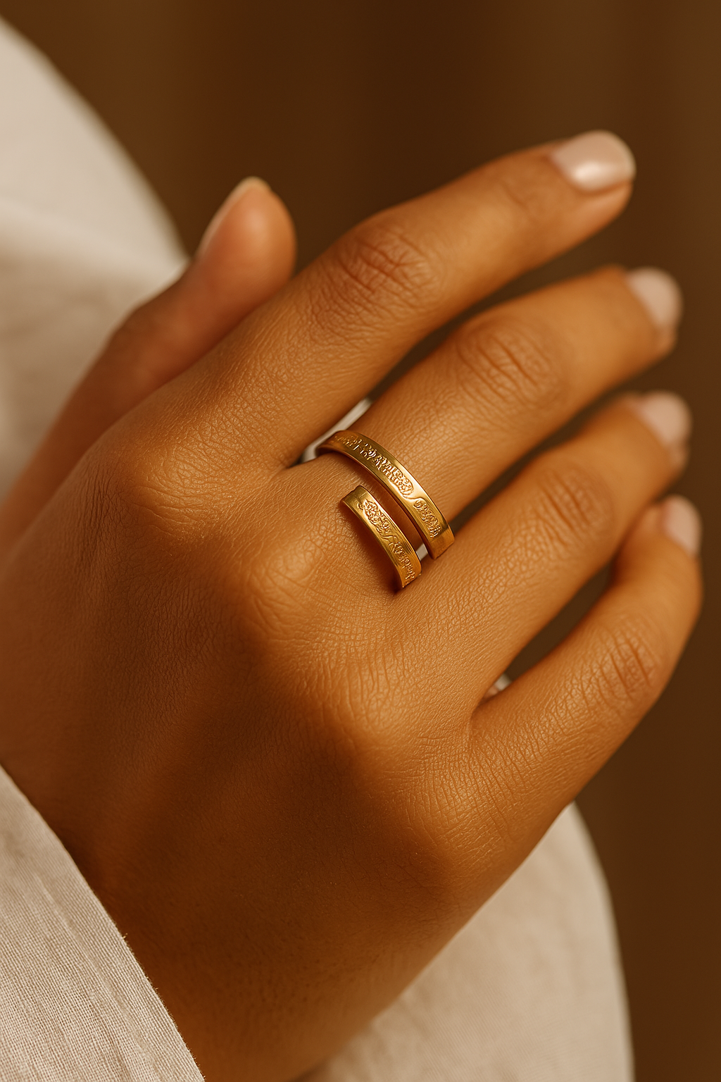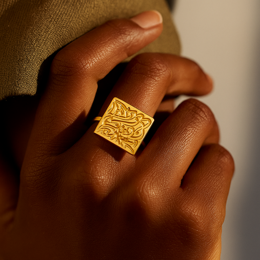 Umarmen Sie das Göttliche mit dem Ayatul Kursi Gerippten Armreif, der den kraftvollen Vers aus dem Koran präsentiert. Dieser elegante Armreif besticht durch seine markante gerippte Kante und ist aus hochwertigem Edelstahl gefertigt, der mit echtem 18K-Gold beschichtet ist.