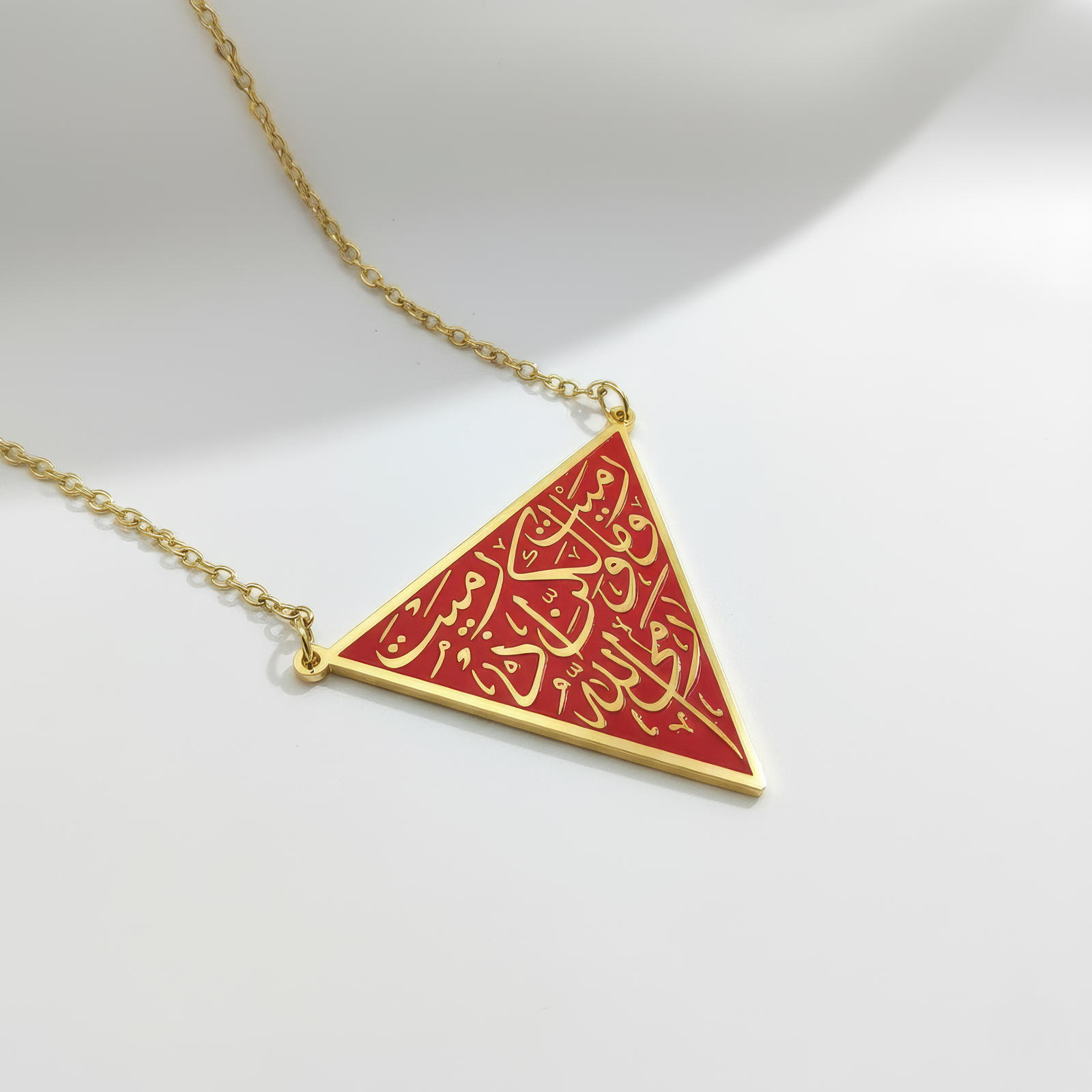 Widerstands-Halskette: Tragen Sie das kraftvolle Symbol des roten Dreiecks von Palästina, das für Stärke und Widerstandsfähigkeit steht. Diese Halskette ist nicht nur ein modisches Accessoire, sondern auch ein zeitloser Ausdruck von Glauben und Ausdauer.